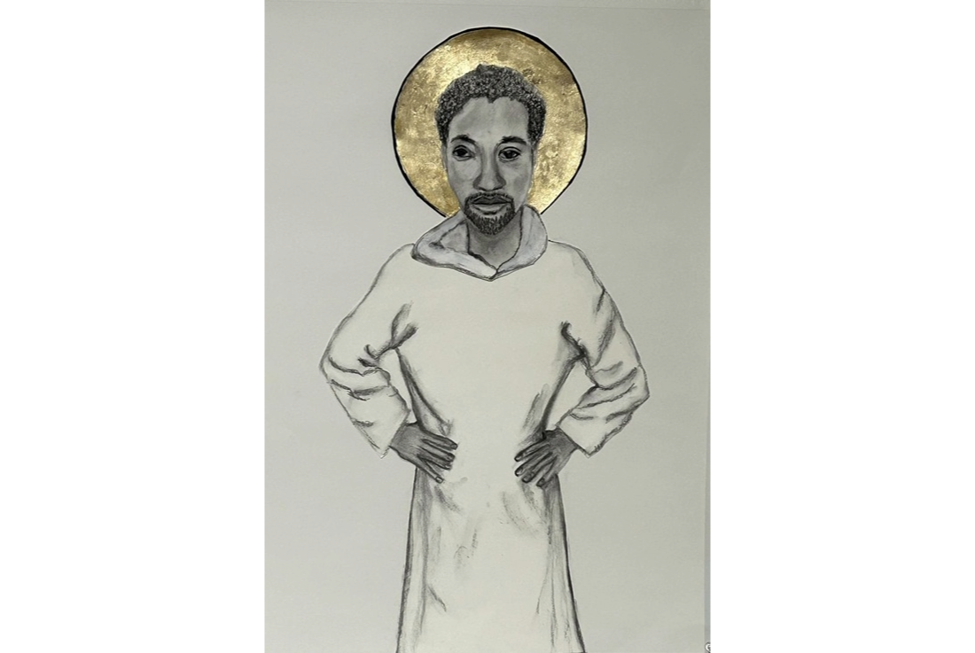 Jesus I know who I am Medium Charcoal on paper With Gold leaf Dimensions 18 x 24 in. (Framed 30 x 36 in.) category God date January 1, 2025
